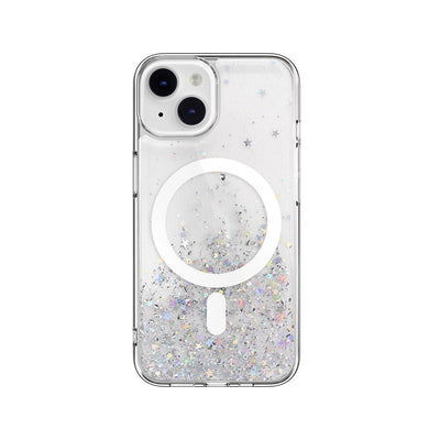 Apple iPhone 14 Kılıf Magsafe Şarj Özellikli Parlayan Simli Şeffaf Lisanslı Switcheasy Starfield-M Kapak Renksiz