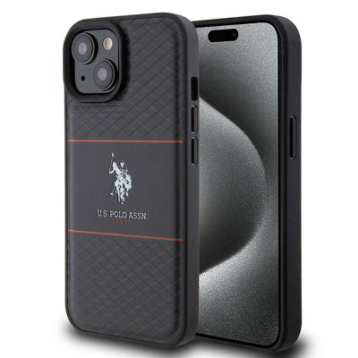 Apple iPhone 15 Kılıf U.S. Polo Assn. Orjinal Lisanslı HS Desenli Baskı Logolu Suni Deri Kapak Siyah