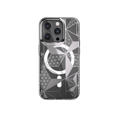 Apple iPhone 15 Pro Kılıf Magsafe Şarj Özellikli Çift IMD Baskılı Lisanslı Switcheasy Artist-M Asanoha Kapak Gri
