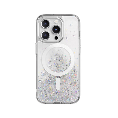 Apple iPhone 15 Pro Kılıf Magsafe Şarj Özellikli Parlayan Simli Şeffaf Lisanslı Switcheasy Starfield-M Kapak Renksiz