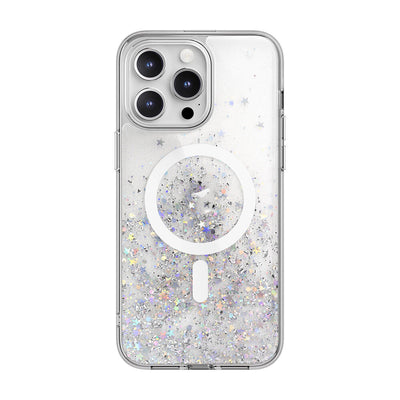 Apple iPhone 15 Pro Max Kılıf Magsafe Şarj Özellikli Parlayan Simli Şeffaf Lisanslı Switcheasy Starfield-M Kapak Renksiz