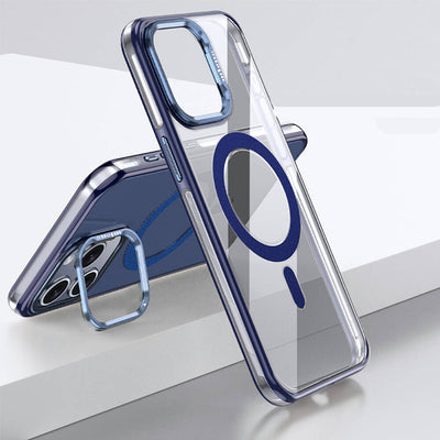 Apple iPhone 15 Pro Max Kılıf Magsafe Şarj Özellikli Wlons Standlı Efsane Kapak Mavi