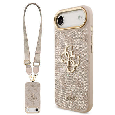 Apple iPhone 17 Air Kılıf Guess Orjinal Lisanslı 4G Büyük Metal Logolu Kalın Askılı Kapak Pembe