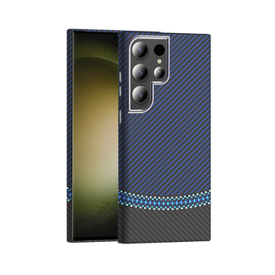 Galaxy S23 Ultra Kılıf M-safe Şarj Özellikli Karbon Fiber Görünümlü Zore Gros Kapak Siyah-Lacivert