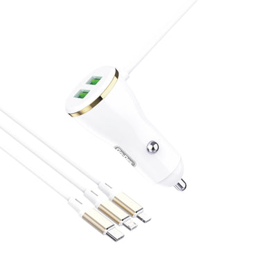 Go Des GD-CC202 5 in 1 5A Hızlı Şarj Çift USB-A ve Micro Type-C Lightning Kablolu Araç Şarj Aleti Beyaz