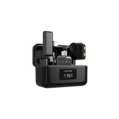 Lenyes LM205 2in1 Type-C Şarj Portlu Yapay Zeka Gürültü Engelleyicili Type-C ve Lightning Bağlantılı Kablosuz Yaka Mikrofonu Siyah