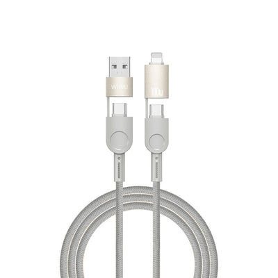 Wiwu 4in1 Raptor Serisi Çoklu USB-A + Type-C to Type-C + Lightning Şarj ve Data Kablosu 100W 120cm Titanyum