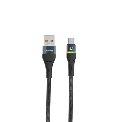 Lenyes LC520 USB-A to Type-C 6A Örgü Tasarımlı Hızlı Şarj Özellikli Data ve Şarj Kablosu 66W 1M Siyah