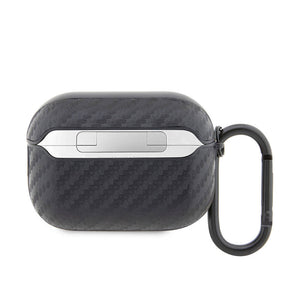 Apple Airpods 3.Nesil Kılıf BMW Orjinal Lisanslı PU Karbon Fiber Tasarımlı Çift Metal Logolu Kapak Siyah
