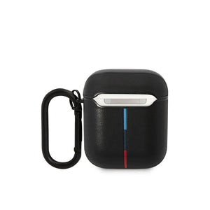 Apple Airpods Pro 2 Kılıf BMW Orjinal Lisanslı PU Deri Tasarımlı 3 Renk Çizgili Çift Metal Logolu Kapak Siyah