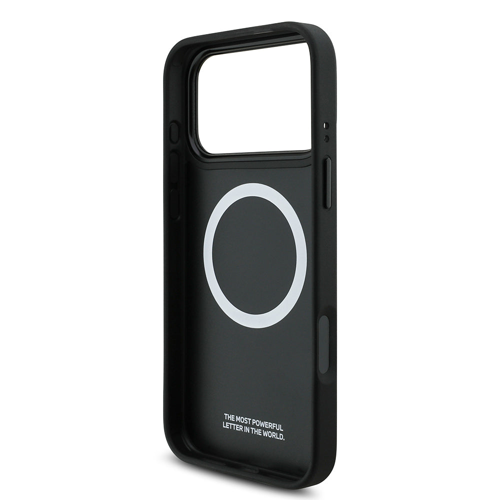 iPhone 17 Pro Max Kılıf BMW Orjinal Lisanslı M-safe Şarj Özellikli Deri Arka Yüzey Metal Logolu Delikli Şerit Tasarımlı Kapak