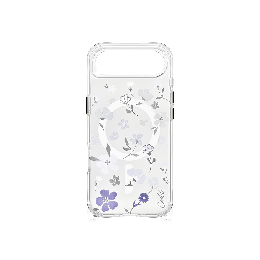 Apple iPhone 17 Air Kılıf M-safe Şarj Özellikli Şeffaf Arka Yüzey Çiçekli Coehl Amara Kapak Lila
