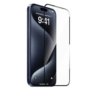 Apple iPhone 15 Pro Wiwu SQ-008 Oleofobik Easy Install Darbeye Karşı Dayanıklı Temperli Cam Ekran Koruyucu + Kolay Uygulama Aparatlı Siyah