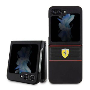 Galaxy Z Flip 5 Kılıf Ferrari Orjinal Lisanslı PU Deri Metal Logolu Multi Çizgili Kapak