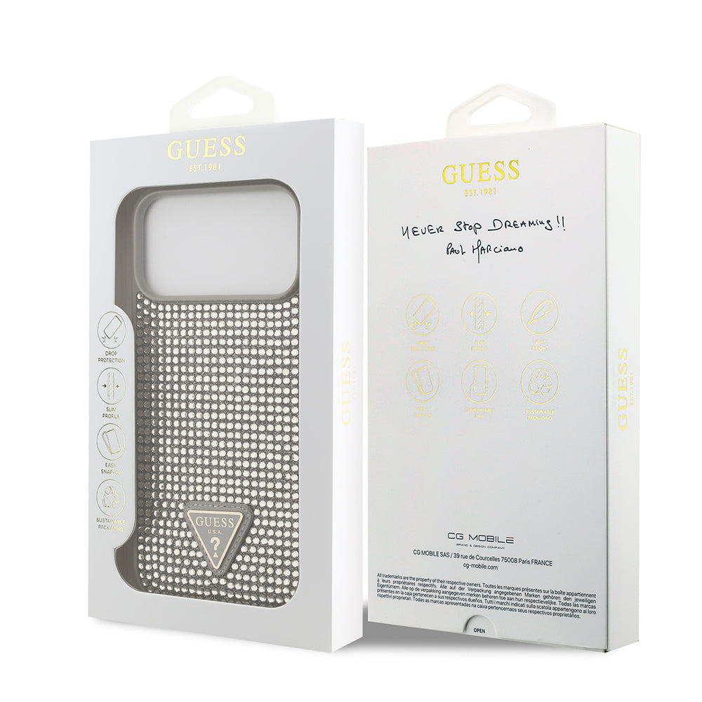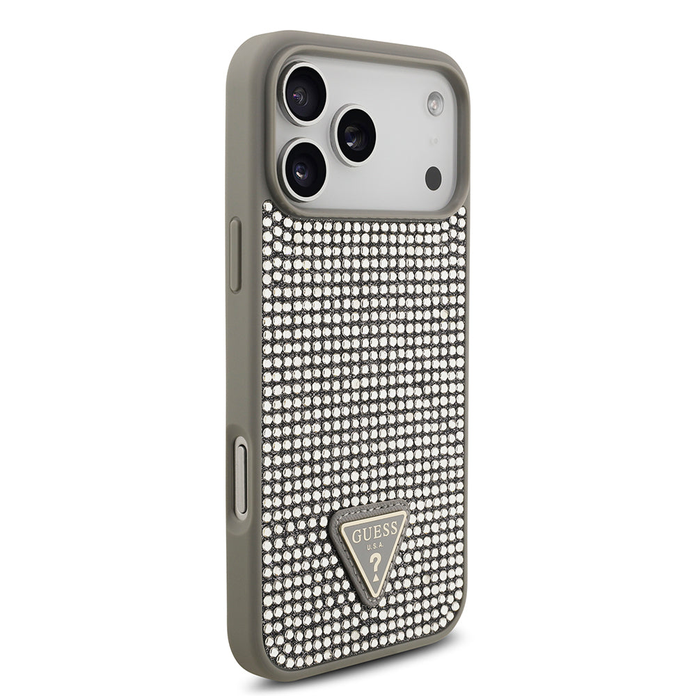 iPhone 17 Pro Max Kılıf Guess Orjinal Lisanslı Taşlı Arka Yüzey Üçgen Logolu Kapak