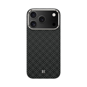 iPhone 17 Pro Max Kılıf Magsafe Şarj Özellikli 1500D Aramid Fiber Pitaka Military-Grade Classic Serisi Black-Grey Twill Kapak