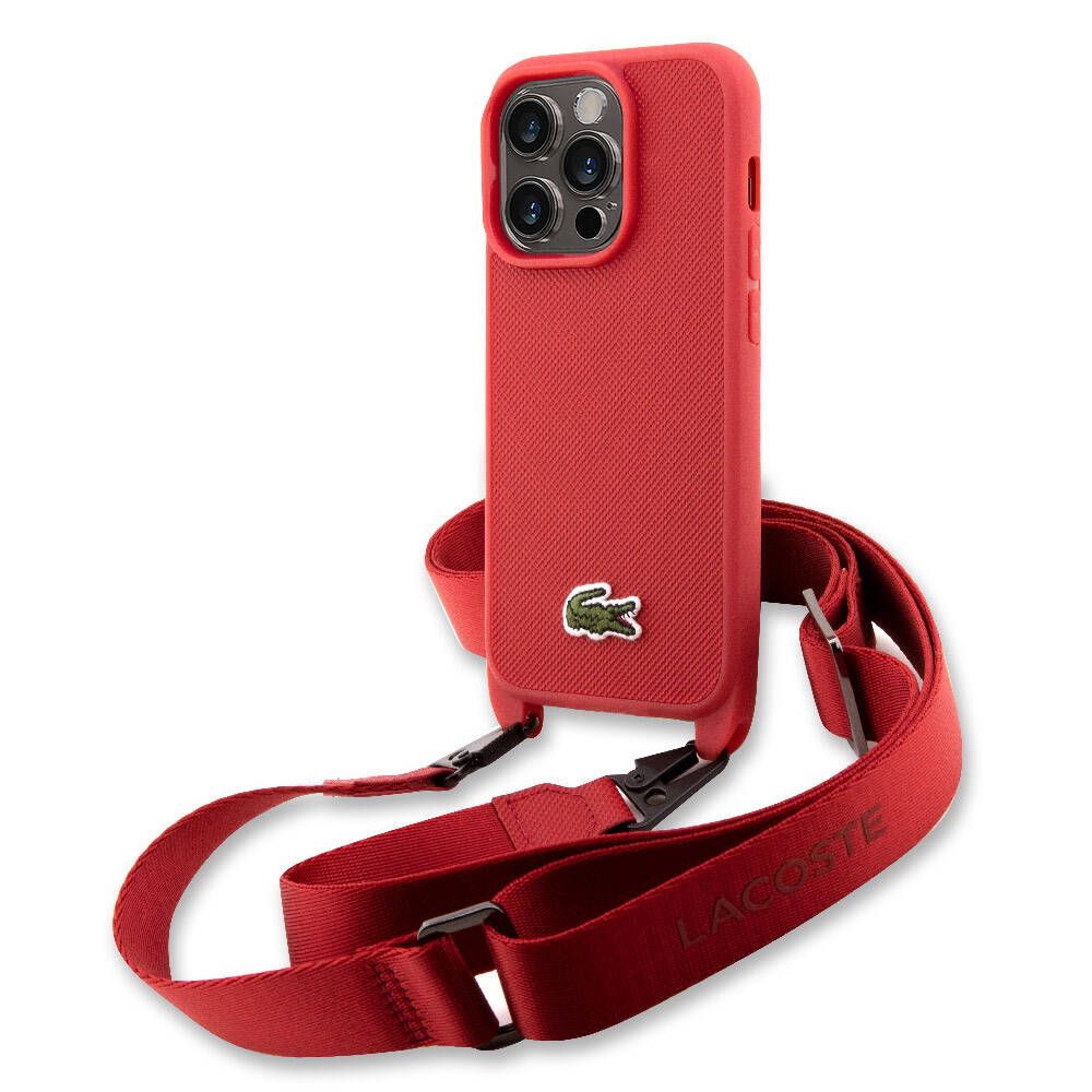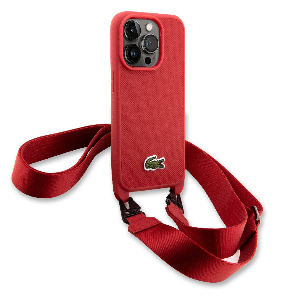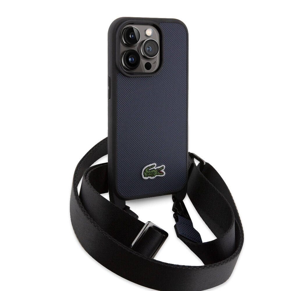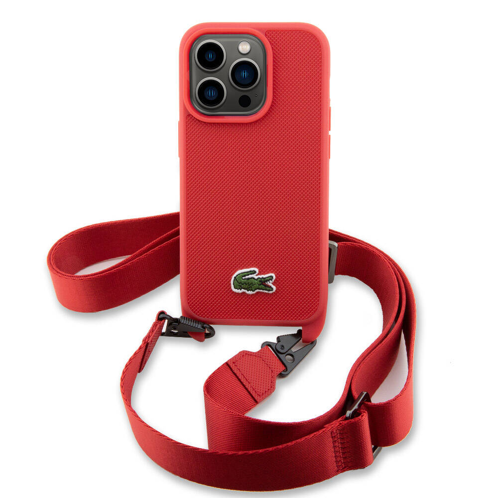 iPhone 14 Pro Kılıf Lacoste Orjinal Lisanslı PU Pike Desenli Arka Yüzey Askılı İkonik Timsah Dokuma Logolu Kılıf