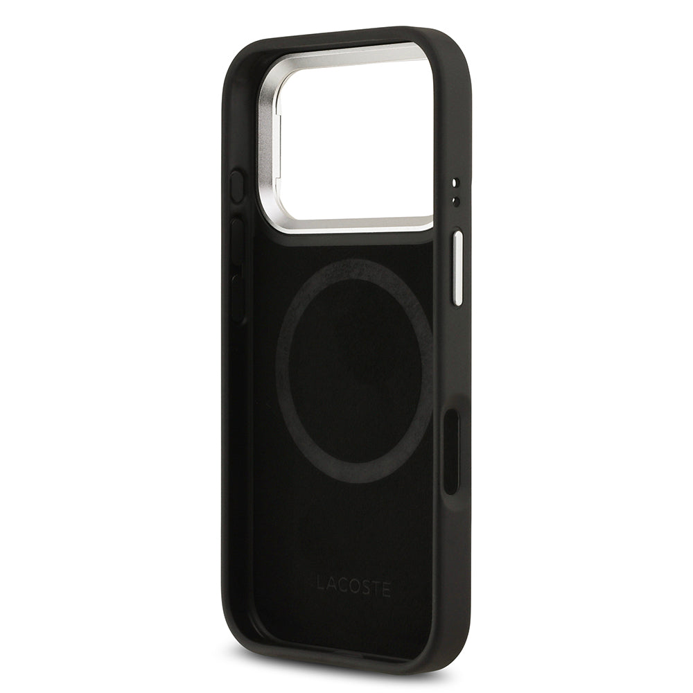 iPhone 17 Pro Kılıf Lacoste Orjinal Lisanslı M-safe Şarj Özellikli PU Pike Desenli Standlı Metal Logolu Kılıf