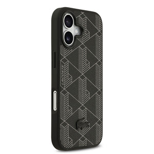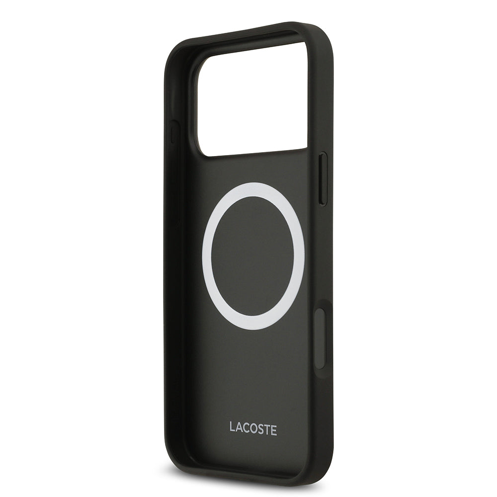 Apple iPhone 17 Pro Max Kılıf Lacoste Orjinal Lisanslı M-safe Şarj Özellikli PU Deri Tasarımlı Kartlıklı Karışık Monogram Desenli Kapak Siyah