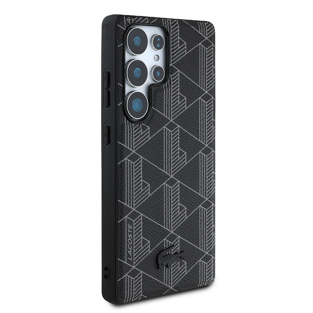 Galaxy S25 Ultra Kılıf Lacoste Orjinal Lisanslı M-safe Şarj Özellikli PU Deri Görünümlü Karışık Monogram Desenli Kılıf