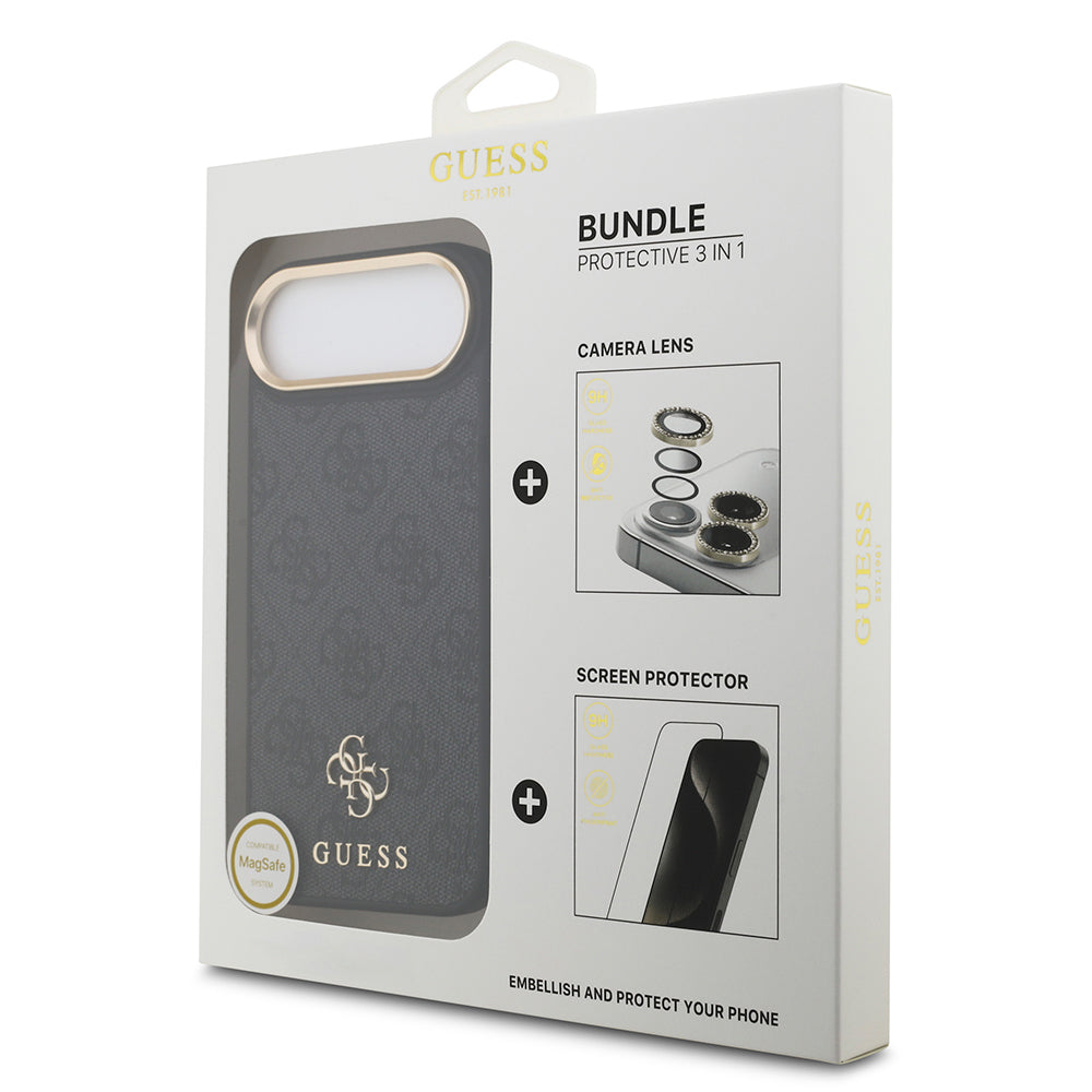 Apple iPhone 17 Air Guess Orjinal Lisanslı 4G ve Yazı Logolu Kılıf + Ekran Koruyucu + Lens Koruyucu 3in1 Aksesuar Seti
