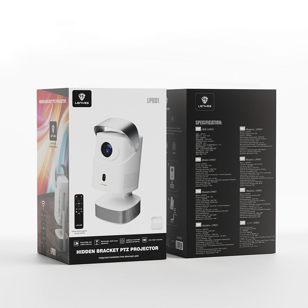 Lenyes LPR01, kompakt tasarımı ve modern görünümü ile ev eğlencesini bambaşka bir seviyeye taşıyor. 180 ANSI lümen parlaklık ve 1280×720 fiziksel çözünürlükle net ve canlı görüntüler sunar. Taşınabilir yapısı sayesinde ister salonda film keyfi yapın, ister yatak odasında favori dizinizi izleyin; LPR01 her yerde size sinema deneyimi yaşatır. Üstelik entegre 40W gücünde hoparlörü ile ek ses sistemine gerek kalmadan güçlü bir ses deneyimi sunar.