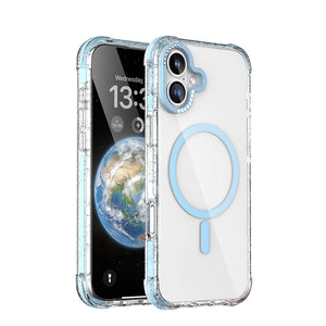 Apple iPhone 16 Pro Kılıf Magsafe Şarj Özellikli Taşlı ve Simli Tasarım Mutural Blink Kapak Mavi