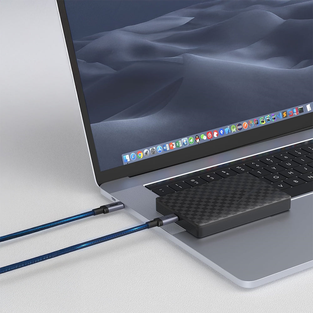 E-Marker çipli yapısıyla birlikte gelen bu kablo, tam 240W’a kadar (48V/5A PD) hızlı şarj desteği sunar. Bu da demek oluyor ki yalnızca akıllı telefonlar veya tabletler değil, yüksek güç ihtiyacı olan dizüstü bilgisayarlar da güvenle ve kısa sürede şarj edilebilir. Örneğin dışarıda çalışırken powerbank üzerinden laptop’unuzu bu kabloyla kolayca besleyebilir, priz arama derdinden kurtulabilirsiniz.
