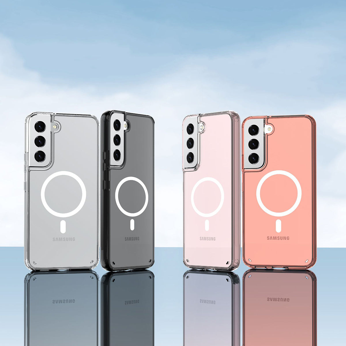 Galaxy S22 Plus Kılıf M-safe Şarj Özellikli Şeffaf Sert PC Zore Embos Kapak Renksiz