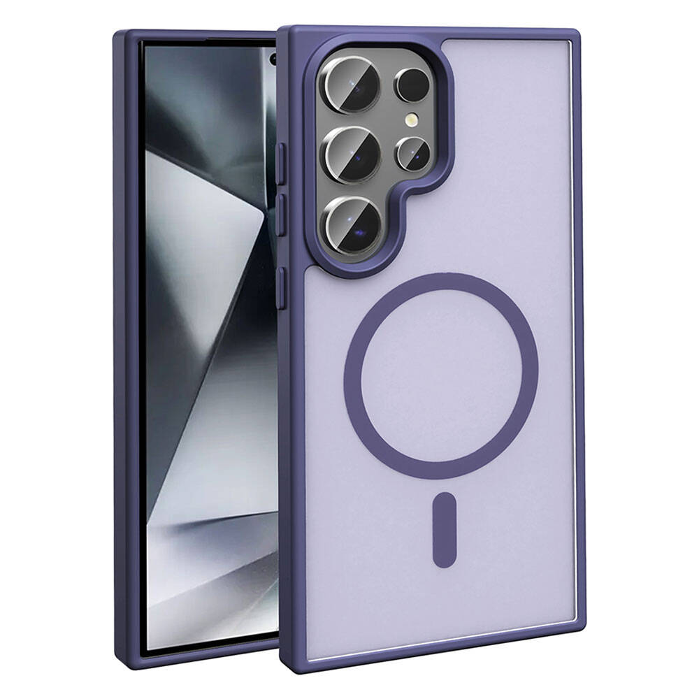 Galaxy S24 Ultra Kılıf M-safe Şarj Özellikli Mat Arka Yüzey Zore Sio Kapak Koyu Mor