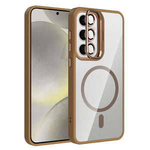 Galaxy S25 Plus Kılıf Standlı ve Kamera Lens Hediyeli M-Safe Şarj Özellikli Zore Etro Kapak