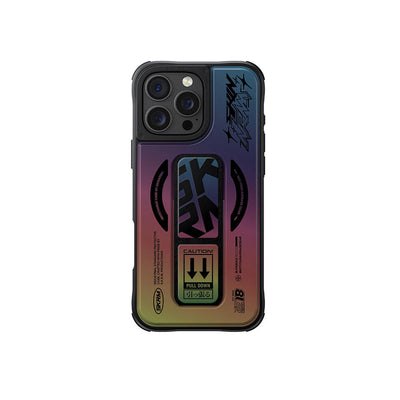 Apple iPhone 16 Pro Kılıf Magsafe Şarj Özellikli Holografik Tasarımlı Standlı Deri Görünümlü Skinarma Kira Kobai Kapak Colorful