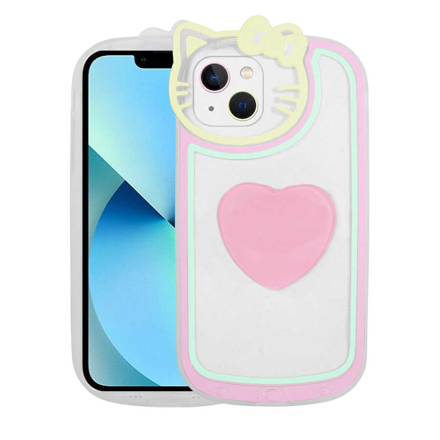 Apple iPhone 13 Kılıf Kedi Figürlü Transparan Pop Soketli Zore Ritmik Kapak Pembe