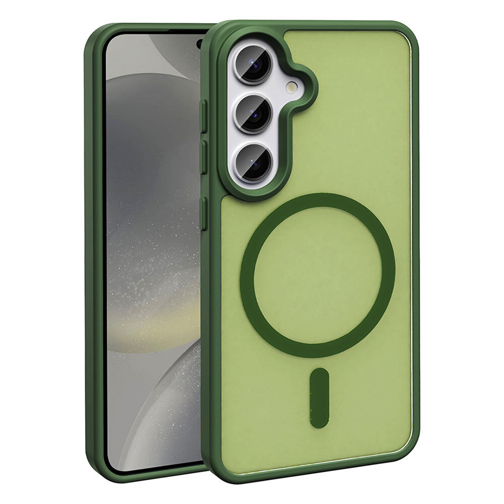 Galaxy S25 FE Kılıf M-safe Şarj Özellikli Mat Arka Yüzey Zore Sio Kapak Koyu Yeşil