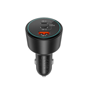 Wiwu Wi-QC027 Exeed Serisi Type-C&Lightning Kablolu + USB-A Hızlı Şarj Özellikli Led Göstergeli Araç Şarj Aleti 117W Füme