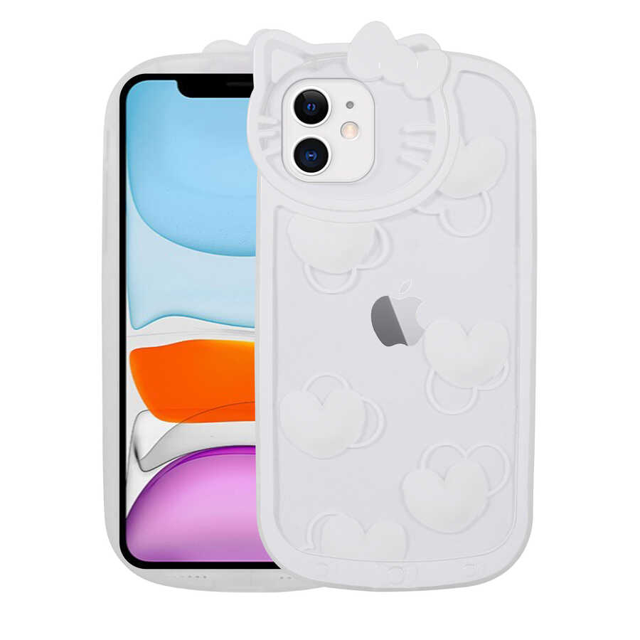 Apple iPhone 11 Kılıf Kedi Figürlü Transparan Sert Silikon Zore Kity Kapak Kalp