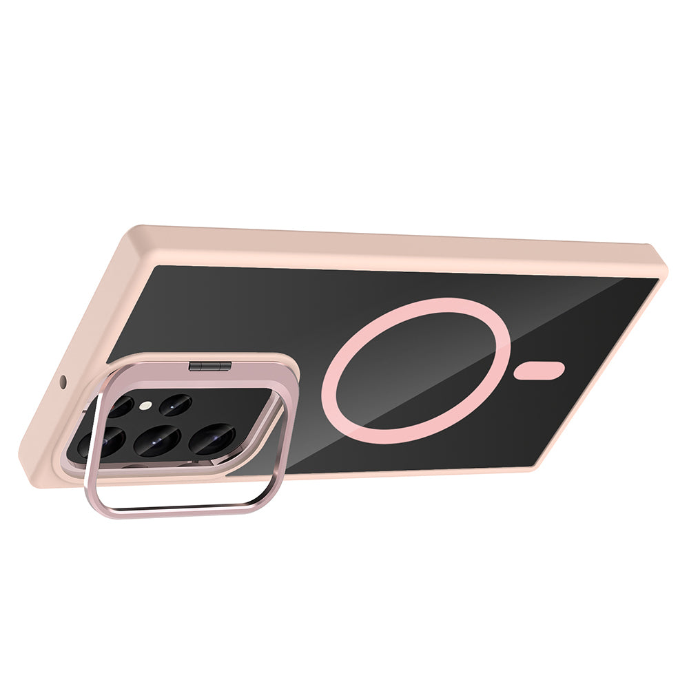 Galaxy S24 Ultra Kılıf Standlı ve Kamera Lens Hediyeli M-Safe Şarj Özellikli Zore Etro Kapak