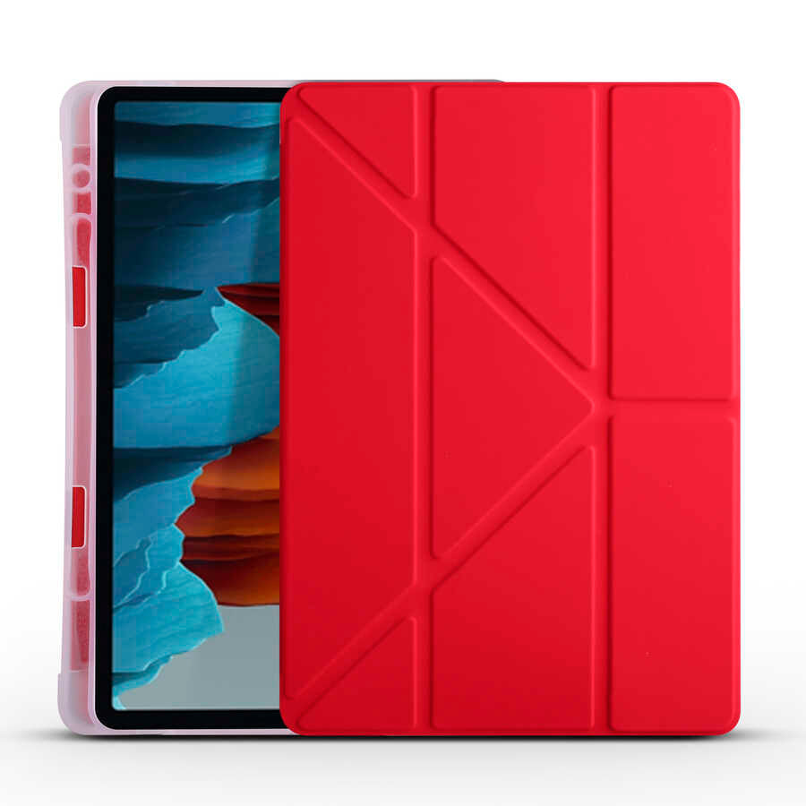 Galaxy Tab S7 Plus T970 Kılıf Zore Tri Folding Kalem Bölmeli Standlı Kılıf Rose Gold