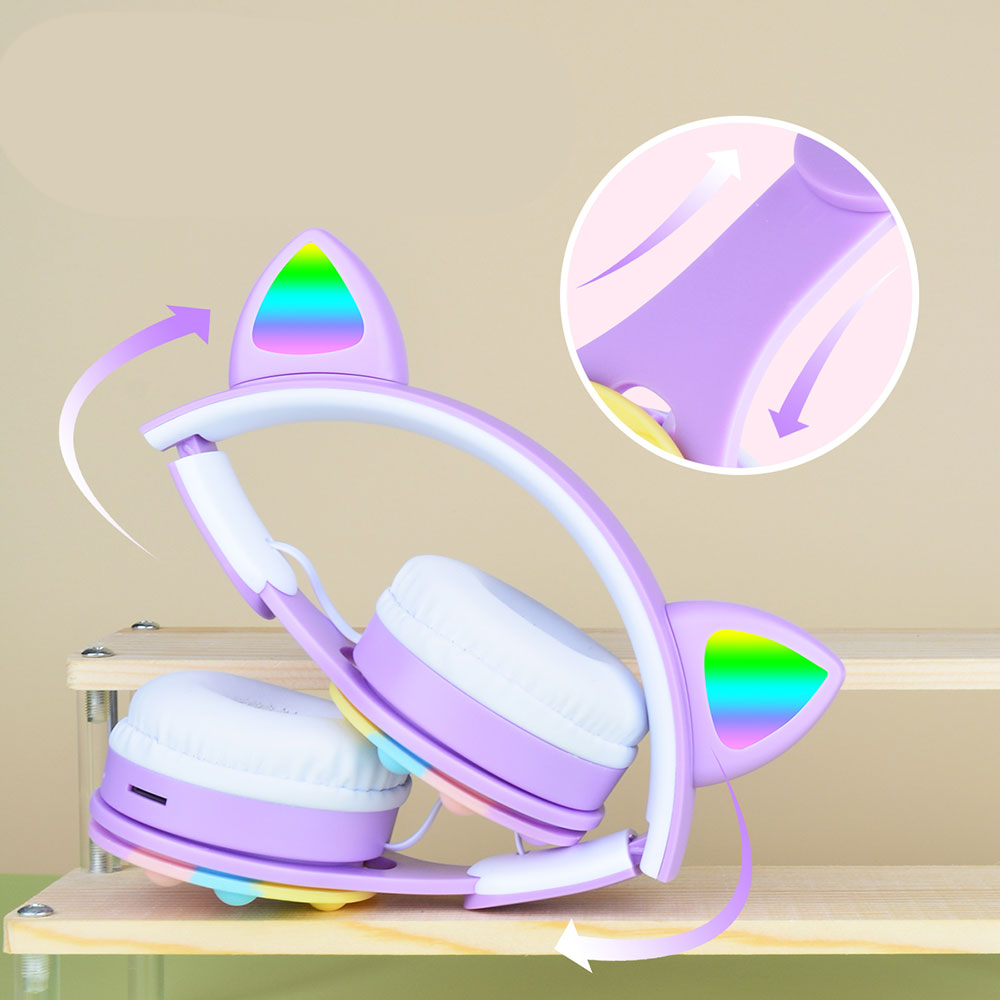 Zore B30 RGB Led Işıklı Kedi Kulağı Band Tasarımı Ayarlanabilir Katlanabilir Kulak Üstü Bluetooth Kulaklık Pembe