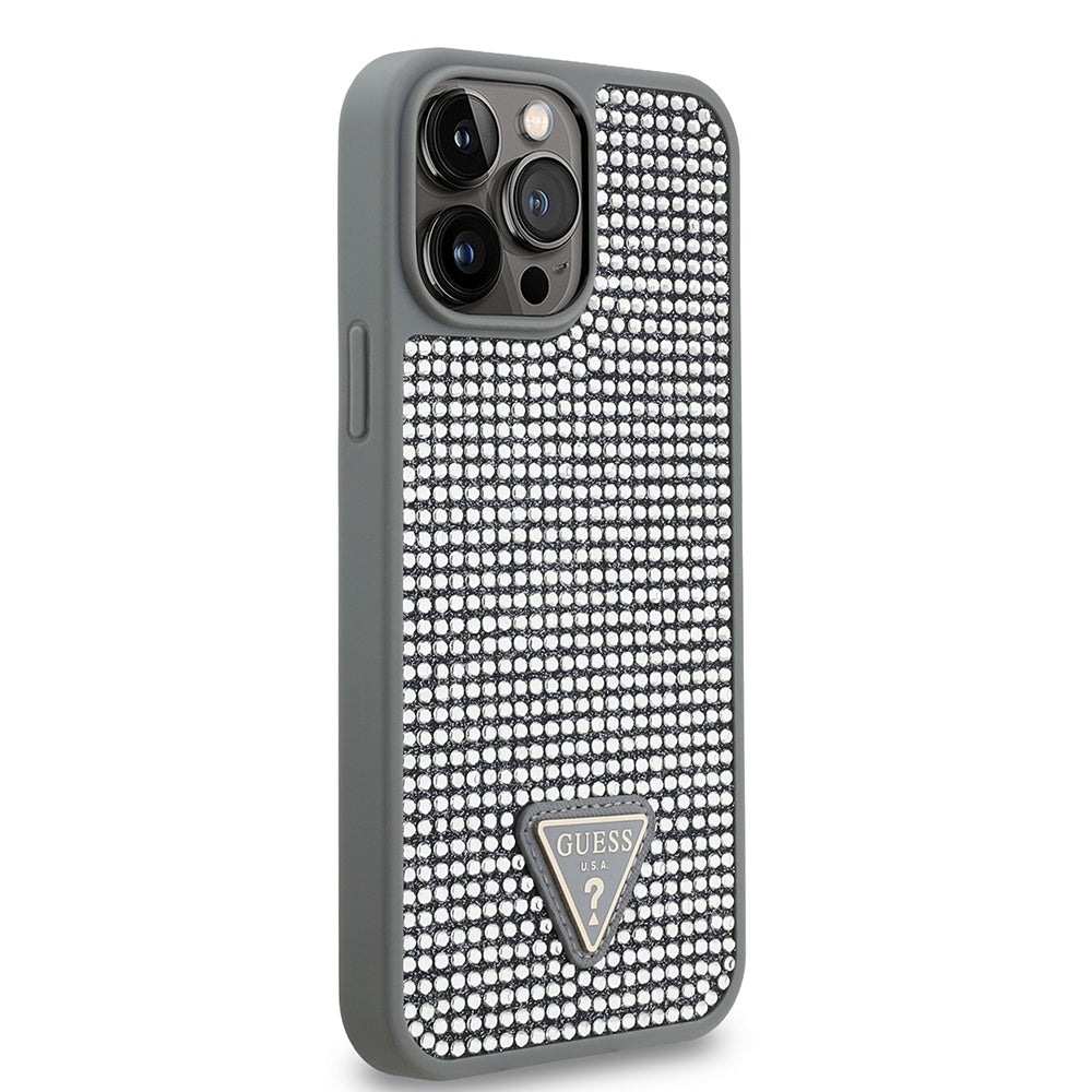Apple iPhone 13 Pro Max Kılıf Guess Orjinal Lisanslı Taşlı Arka Yüzey Üçgen Logolu Kapak