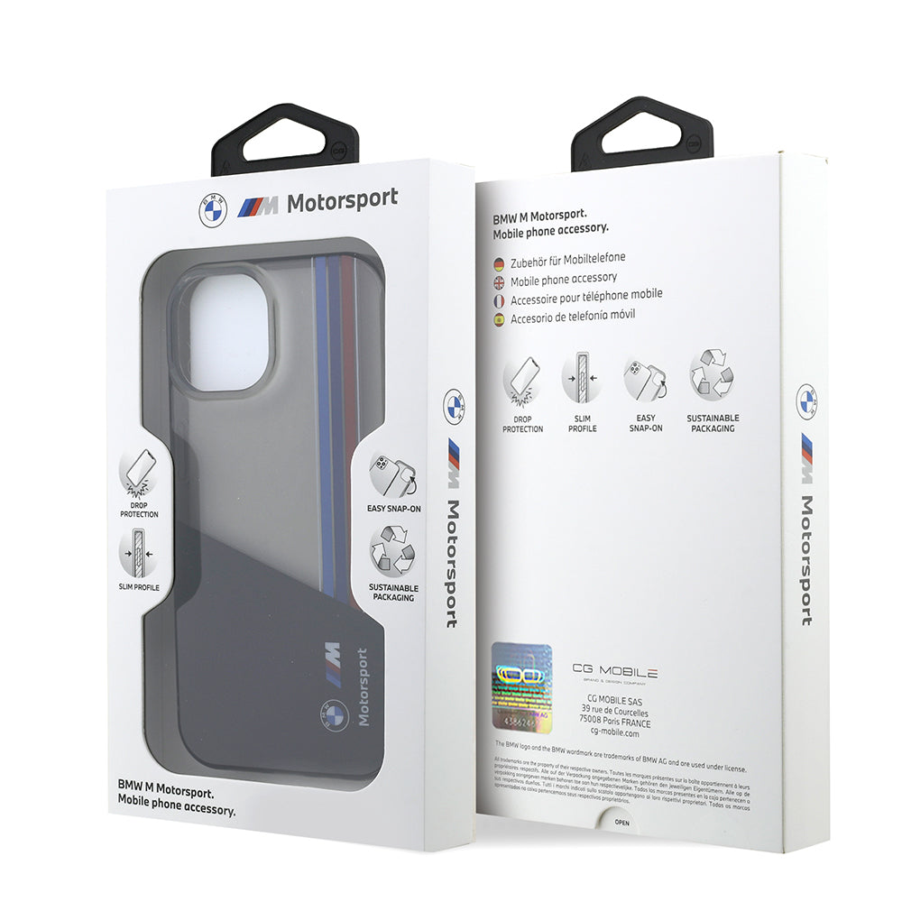 iPhone 14 Kılıf BMW Orjinal Lisanslı Yarı Transparan M Dizayn Çizgili Kapak