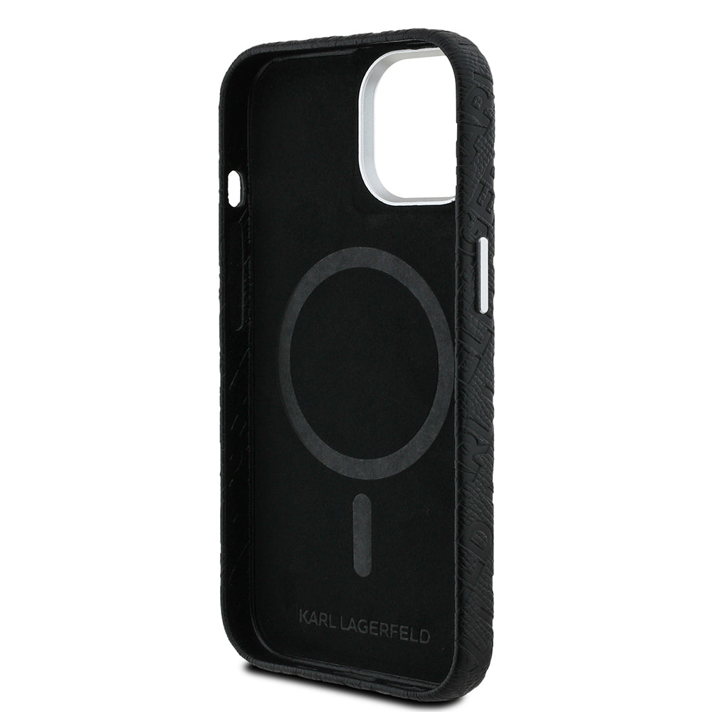 iPhone 14 Kılıf Karl Lagerfeld Orjinal Lisanslı PU Deri Damgalı Metal Yazı Logolu Kılıf