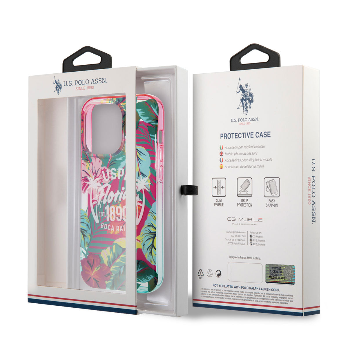 iPhone 14 Pro Kılıf U.S. POLO ASSN. Renkli Yaprak Baskılı Dizayn Kılıf