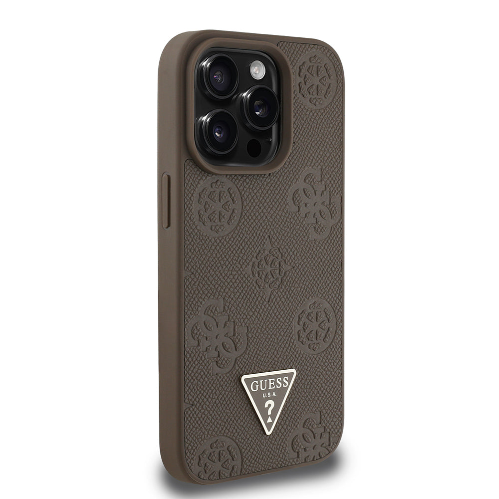 iPhone 14 Pro Max Kılıf Guess Orjinal Lisanslı Magsafe Şarj Özellikli Sıcak Baskılı Üçgen Logolu PU Deri Peony Kapak