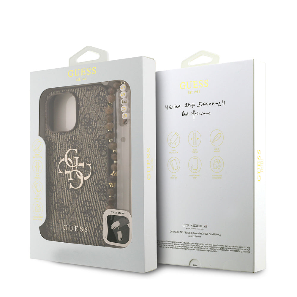 iPhone 14 Pro Max Kılıf Guess Orjinal Lisanslı PU Deri Bilek Askı İpli Metal Büyük 4G ve Yazı Logolu Kapak