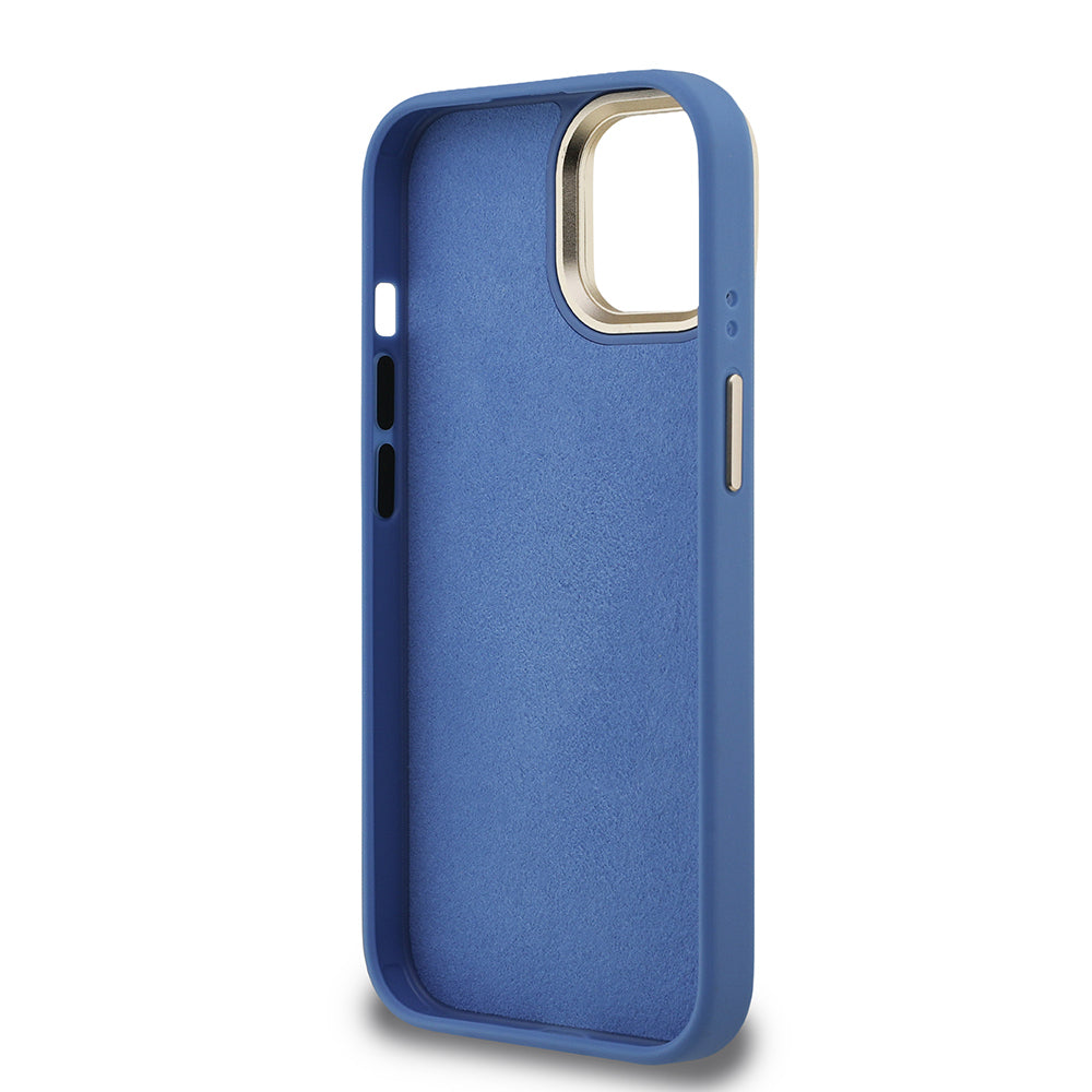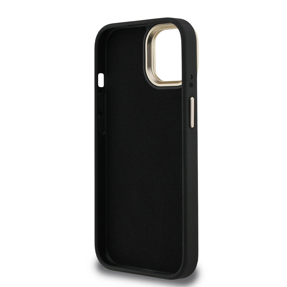 iPhone 15 Kılıf Guess Orjinal Lisanslı PU Deri 4G Desenli Metal Büyük 4G ve Yazı Logolu Kamera Standlı Kılıf