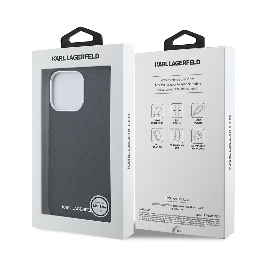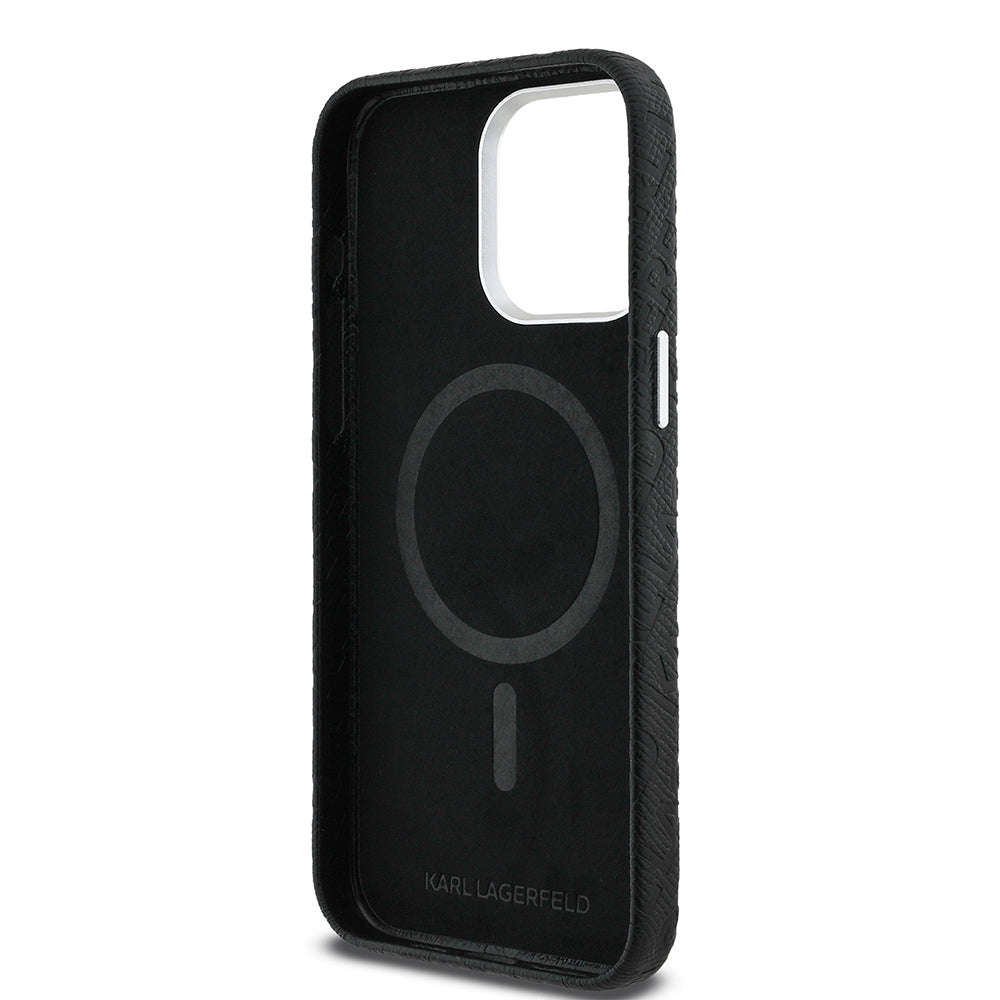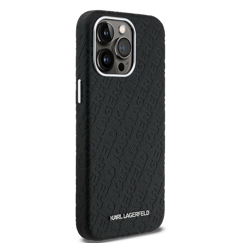 iPhone 15 Pro Max Kılıf Karl Lagerfeld Orjinal Lisanslı PU Deri Damgalı Metal Yazı Logolu Kılıf