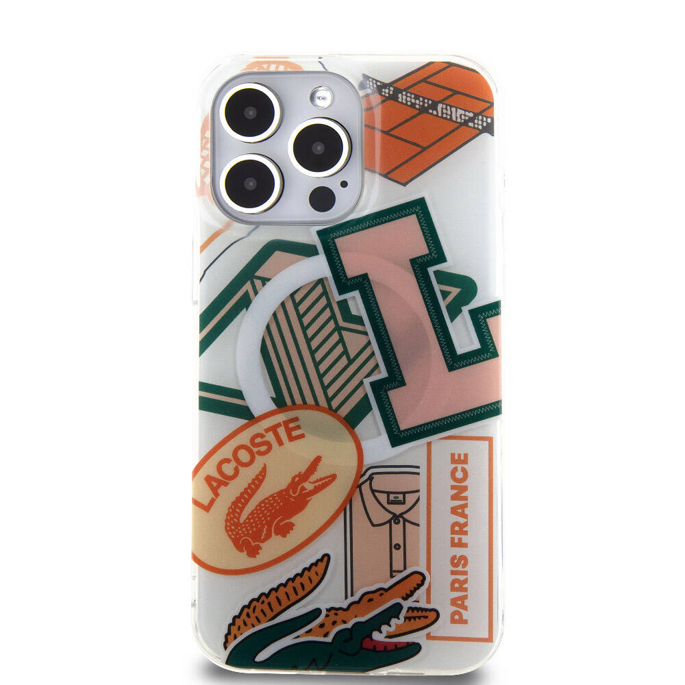 iPhone 15 Pro Max Kılıf Lacoste Orjinal Lisanslı M-safe Şarj Özellikli Çift Katmanlı Yamalar Desenli Kılıf