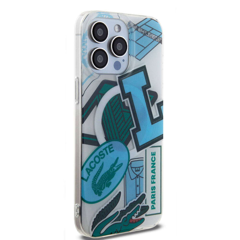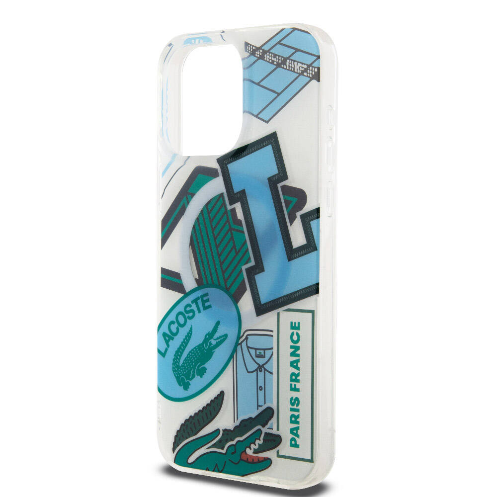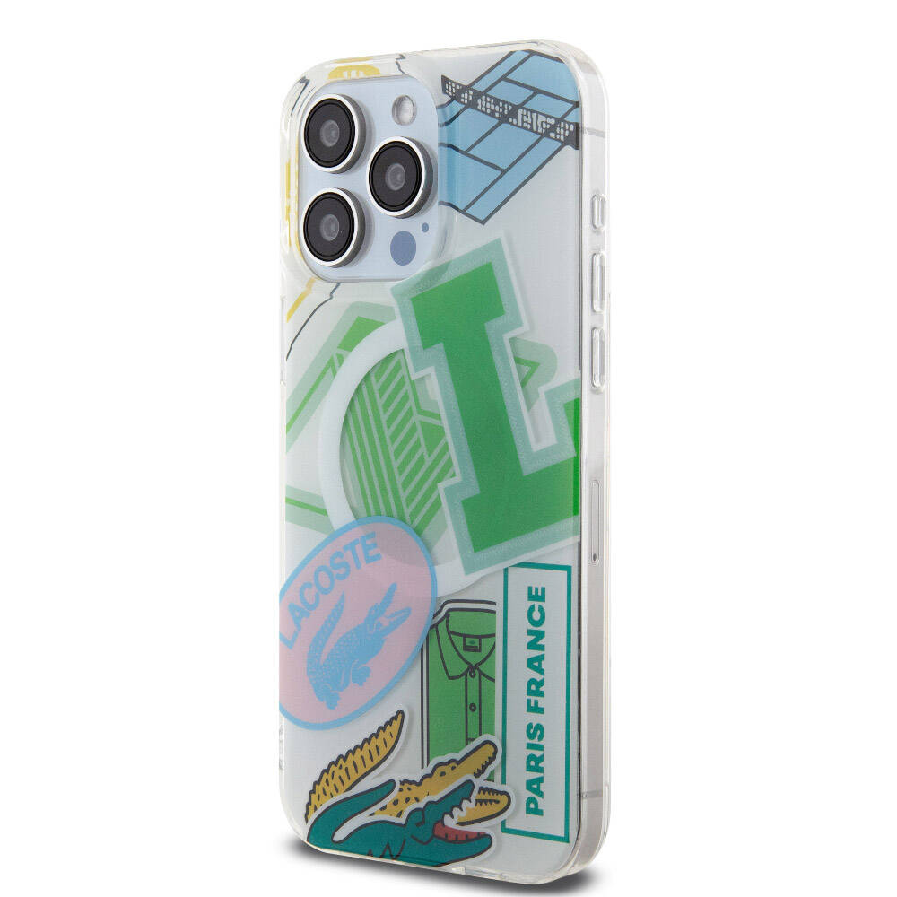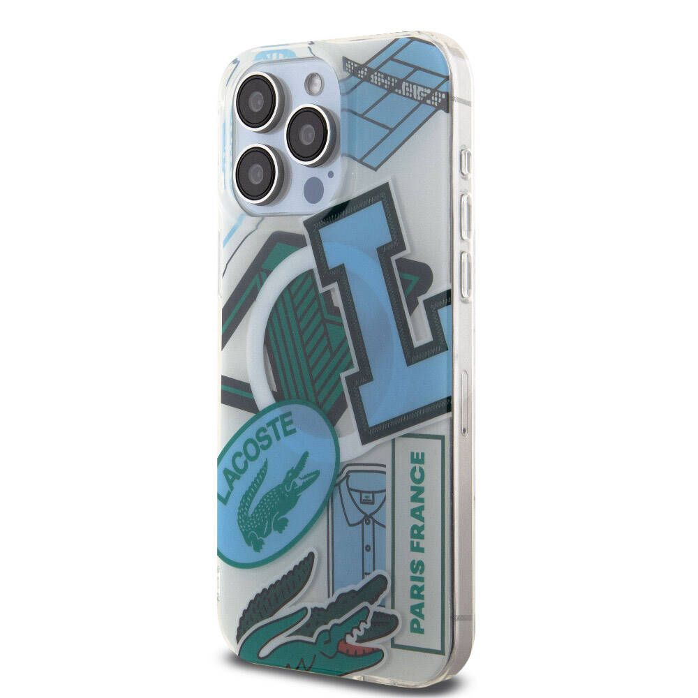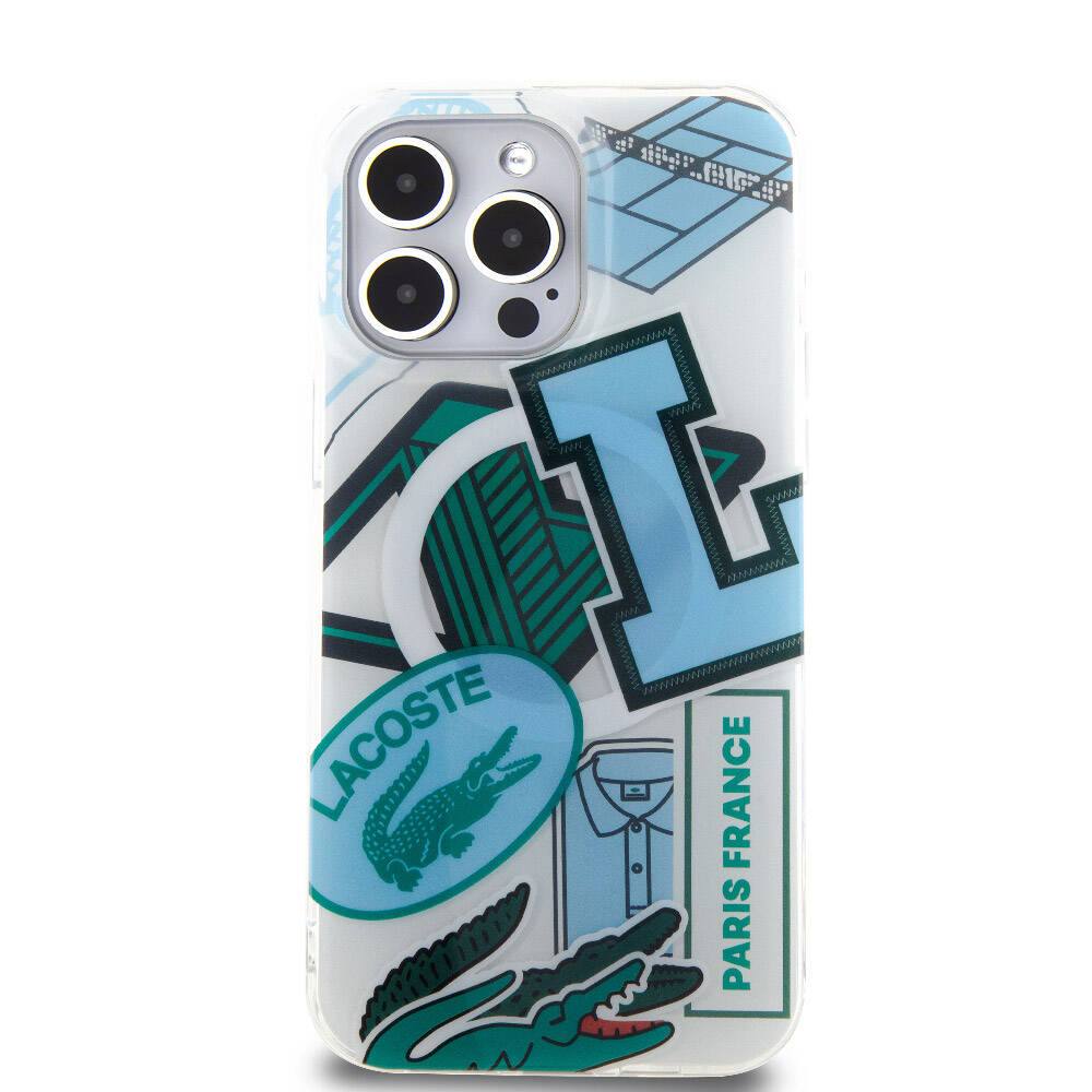 Apple iPhone 15 Pro Max Kılıf Lacoste Orjinal Lisanslı Magsafe Şarj Özellikli Çift Katmanlı Yamalar Desenli Kapak
