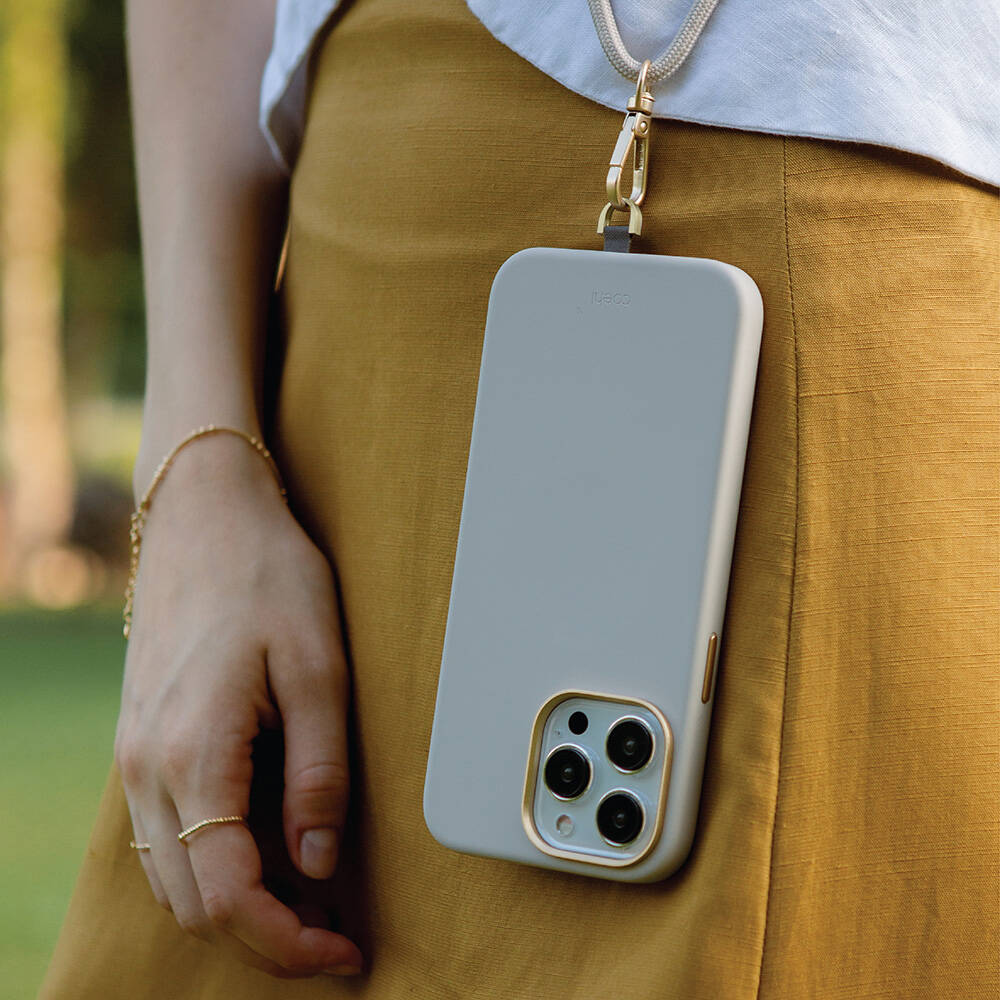 Apple iPhone 15 Pro Max Kılıf Magsafe Şarj Özellikli Soft Pürüzsüz Yüzey Askı İpli Coehl Creme Kapak
